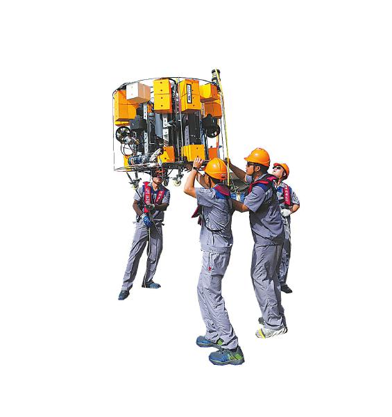 潜 7月8日,科研人员将无人潜器吊运入海。 本栏图片均据新华社