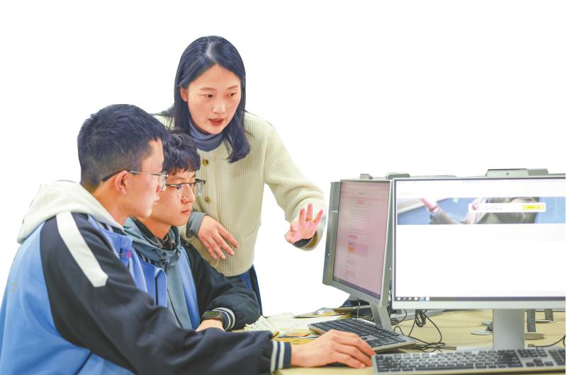 蒋维明(左一)带着学生做茶实验。