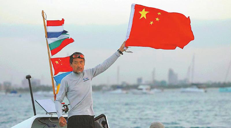 刘勇即将到达终点时拍照留念。 受访者供图
