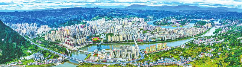 鸟瞰宣汉县城。