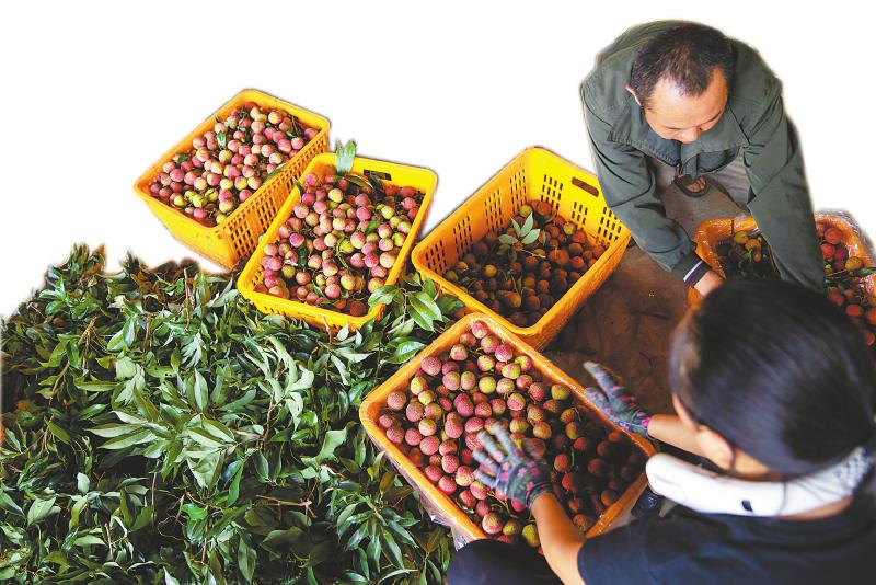 7月17日,泸州市合江县荔江镇五亩村,村民在分拣荔枝。