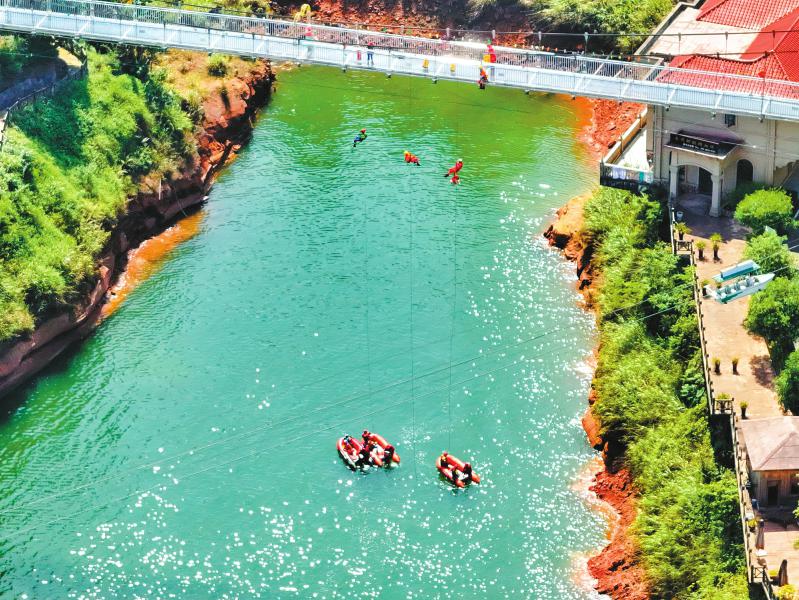 “联动-2025”第六届成渝地区双城经济圈青年应急志愿服务综合演练暨应急救援技能比武现场。 团省委供图