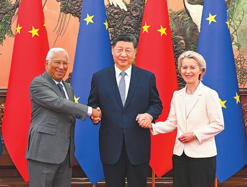 七月二十四日上午,国家主席习近平在北京人民大会堂会见来华举行第二十五次中国-欧盟领导人会晤的欧洲理事会主席科斯塔和欧盟委员会主席冯德莱恩。新华社记者谢环驰摄