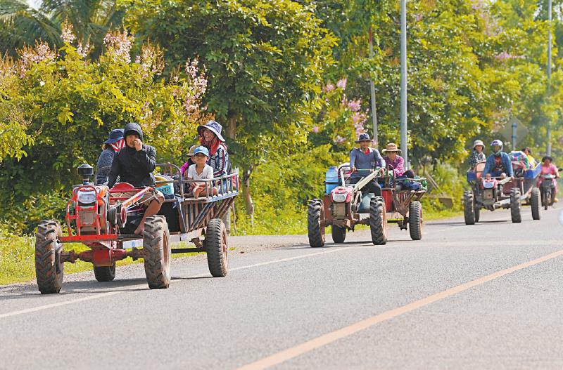 7月25日,在柬埔寨奥多棉吉省,边境居民驾车撤离。