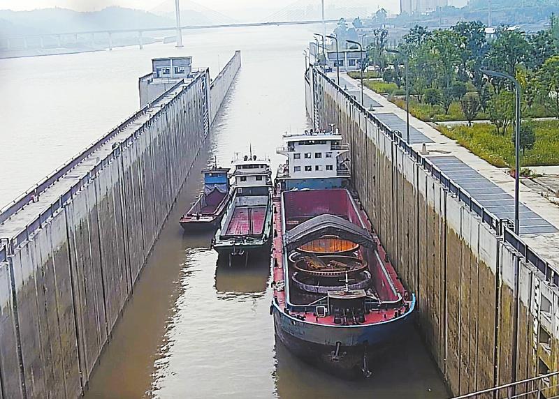 “黔龙2号”过闸。 四川岷江港航电开发有限责任公司供图