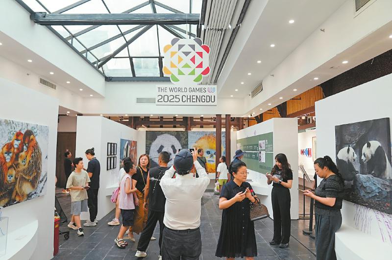 7月24日,第12届世界运动会重要文化配套活动——“世运·天府”文化艺术展在成都宽窄巷子启幕并免费向市民和游客开放。展览以“体育+文化”的创新视角,精选成都世运会、“双宝”——大熊猫和川金丝猴、四川非遗主题的百余件精美展品,通过三大主题板块和沉浸式互动装置,生动呈现体育精神与巴蜀文化的深度交融,展现“锦绣天府·安逸四川”的独特魅力。 四川日报全媒体记者 吴枫 摄