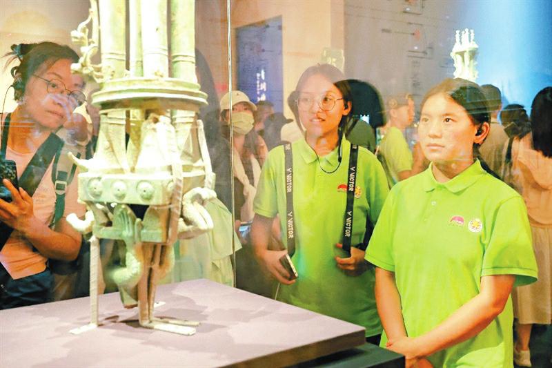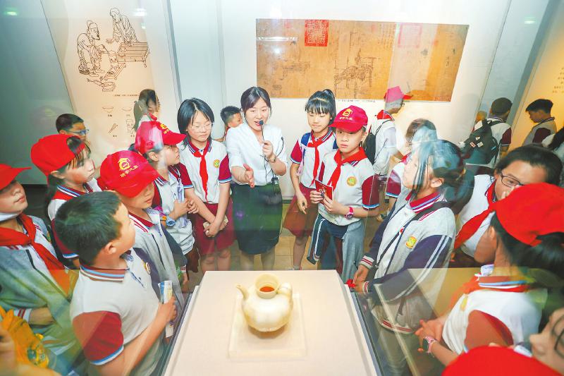 7月25日,在眉山市仁寿县总工会开办的爱心暑托班活动中,孩子们正和机器狗互动。 潘帅 摄(C视觉)