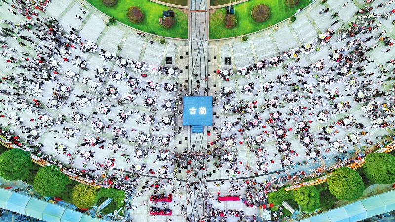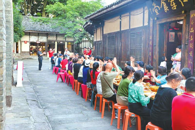 游客在古蔺县太平古镇体验长桌宴。古蔺县委宣传部供图