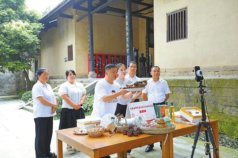 “卤鹅哥”林江(左一)正带着与会基层党组织书记推介文旅产品。内江市委组织部供图