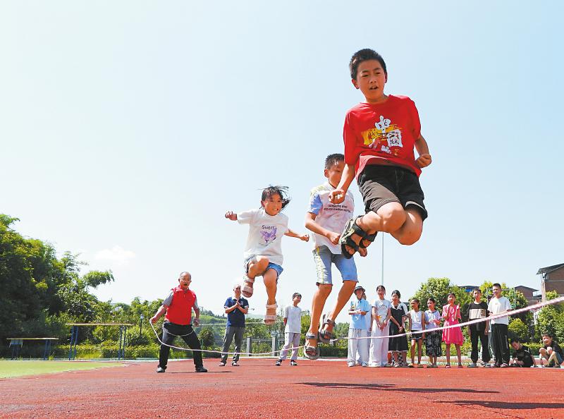 7月27日,在达州市达川区大堰镇中心学校,学生们在跳绳。 邓良奎 摄(C视觉)
