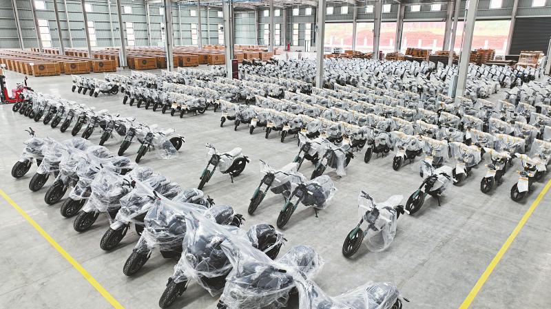 四川易行时代生产车间包装区,工人在打包即将发往海外的电动摩托。 四川日报全媒体记者 韦维 摄