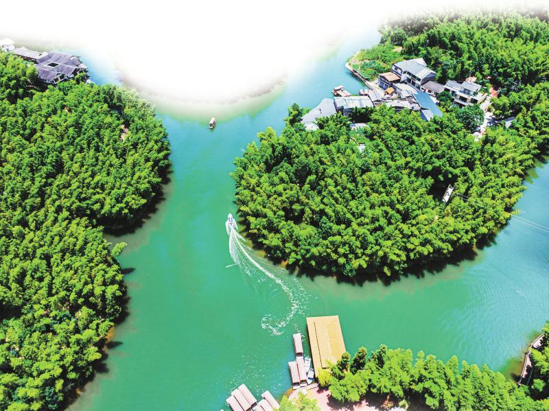 夏日的蜀南竹海景区呈现竹翠水碧的宜人景象,吸引游客泛舟赏竹。 张华 摄(C视觉)