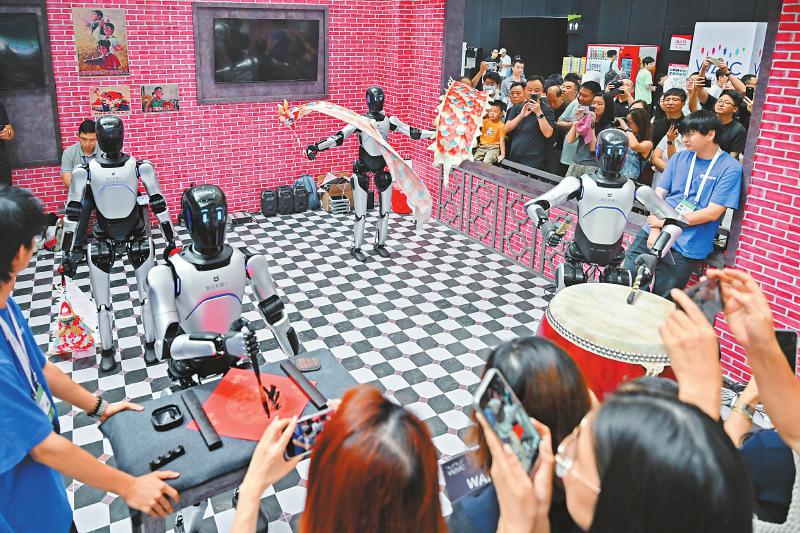 智元机器人在进行“才艺”展示。 新华社记者 陈浩明 摄