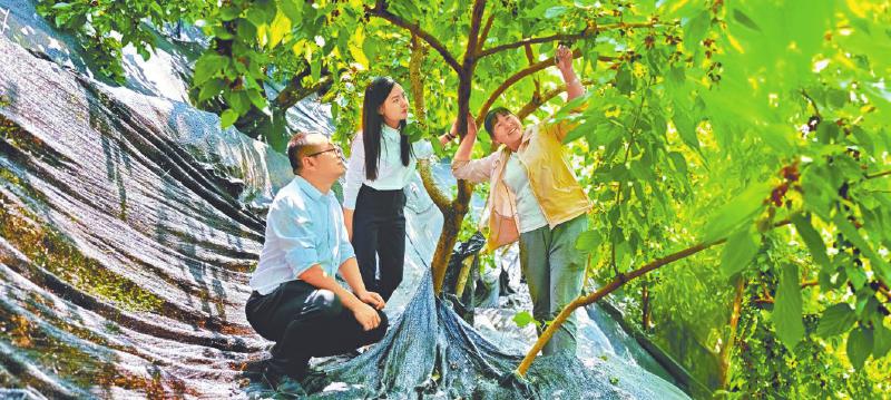 邮储银行盐边县支行客户经理在桑椹果园了解客户金融需求。