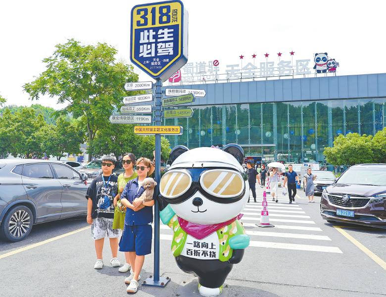 游客在天全服务区打卡点拍照打卡。 周宝 摄(C视觉)