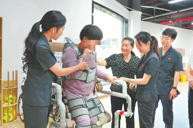 小怡(化名)穿戴上外骨骼机器人,站了起来。 泸州市中级人民法院供图