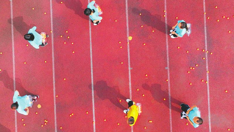 在遂宁市残疾人全民健身运动会上,运动员正在参加趣味欢乐跳跳球比赛。刘昌松 摄(C视觉)