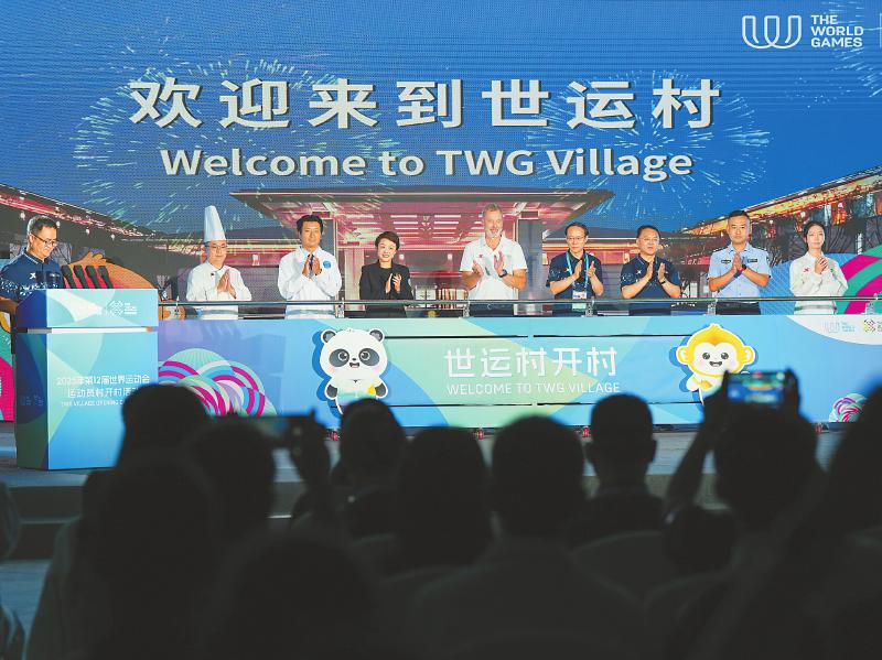 8月3日,嘉宾在成都世运会运动员村开村活动上启动开村装置。 新华社记者 王曦 摄
