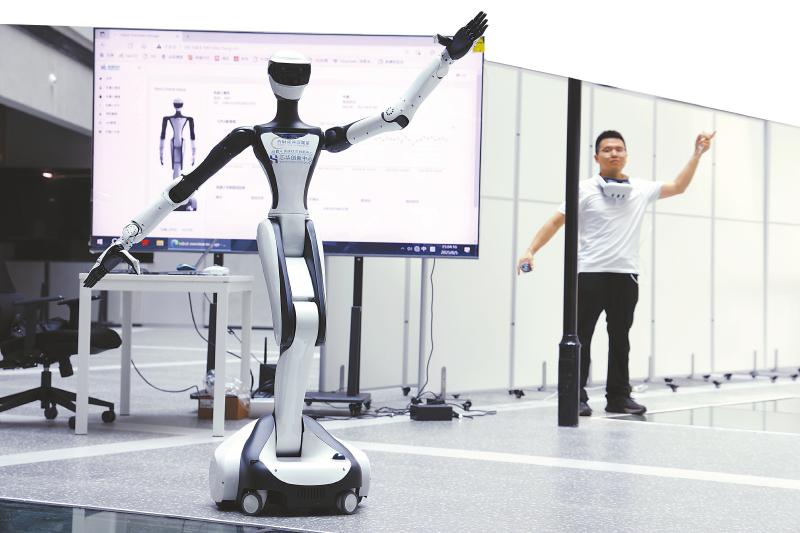 工作人员正操控智能机器人进行动态感知训练。四川日报全媒体记者 韦维 摄