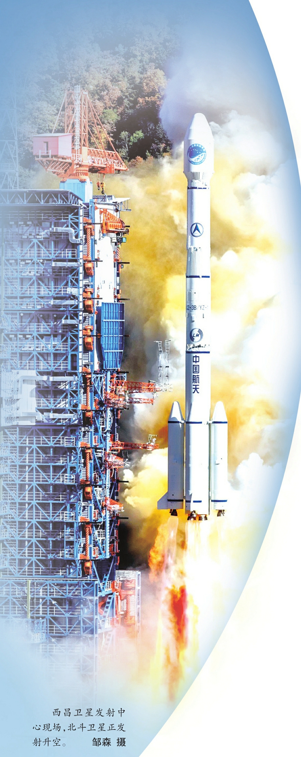 西昌卫星发射中心现场,北斗卫星正发射升空。 邹森 摄