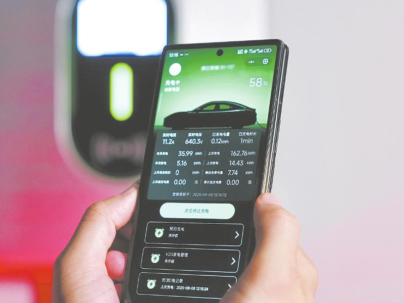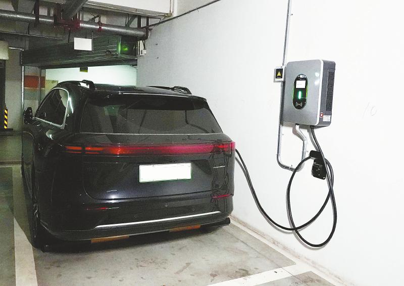 小区地下停车场内V2G充电桩正在给新能源汽车充电。 周宝 摄(C视觉)