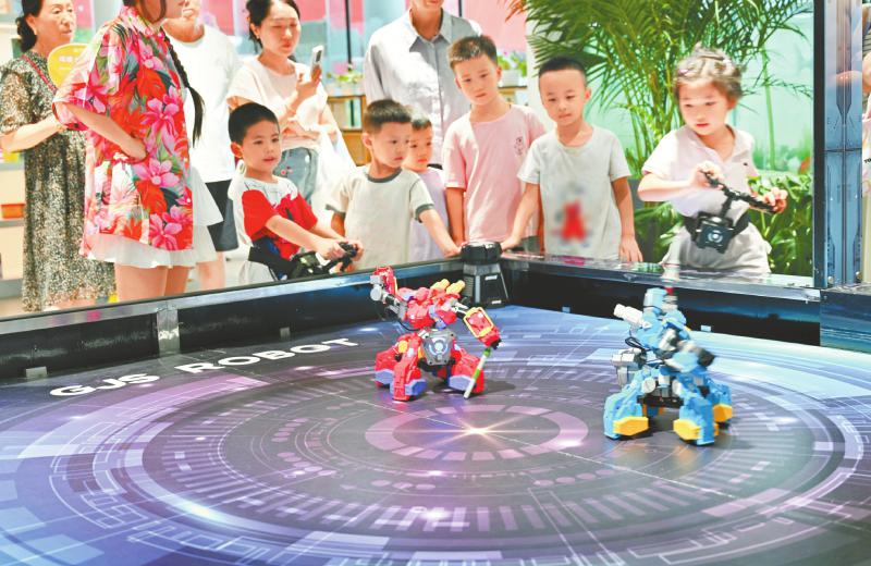 小朋友们在新川Robot体验坊里观看机器人对战。 李昀波 摄(C视觉)