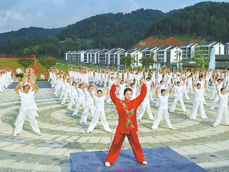 8月8日,八段锦爱好者在曾家山体育公园展演。 朝天区委宣传部供图