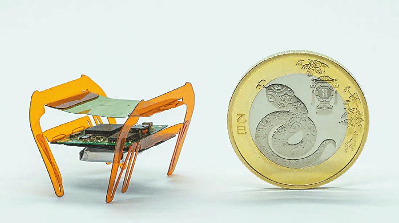 “电子蟑螂”软体微型机器人,与一枚硬币大小相当。电子科技大学供图