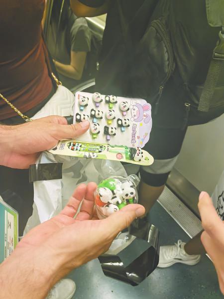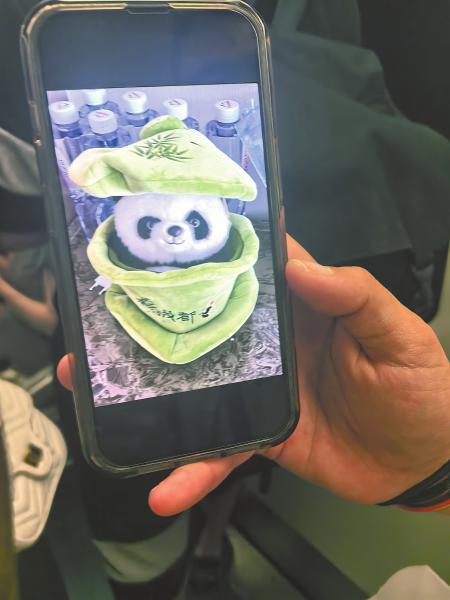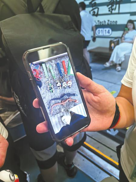 克里斯蒂娜向记者展示她在饿了么App上买的旅游纪念品。