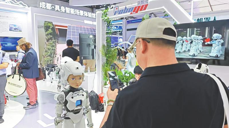嘉宾与机器人拍照互动。 成都市经信局市新经济委供图