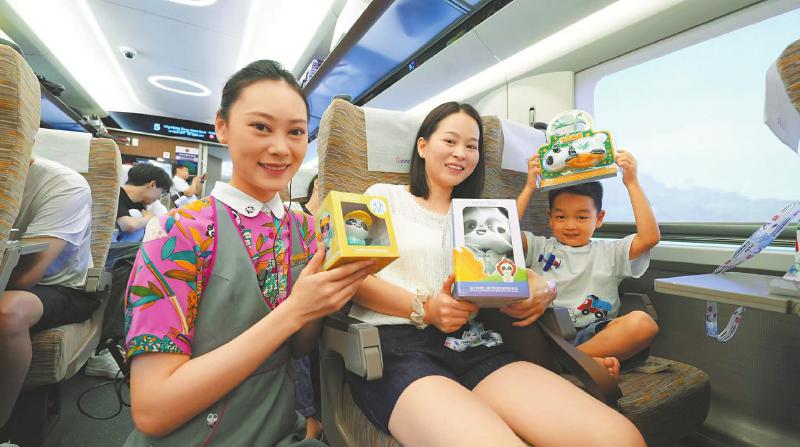 旅客展示世运会纪念品。受访者供图
