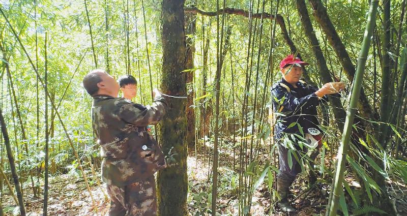 调查人员为树木进行“体检”。