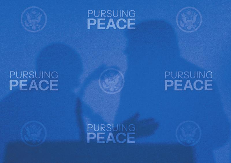 8月15日,美国总统特朗普(右)与俄罗斯总统普京在共同出席联合记者会时身影映在现场。 新华社记者 吴晓凌 摄