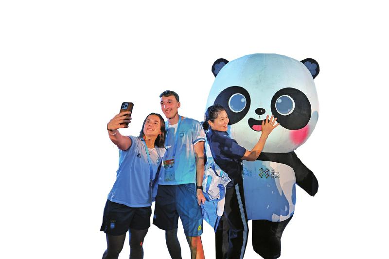 8月11日,恰逢瑞士队队员埃尔米·彼得生日,他收到了志愿者送上的生日礼物——成都世运会吉祥物。