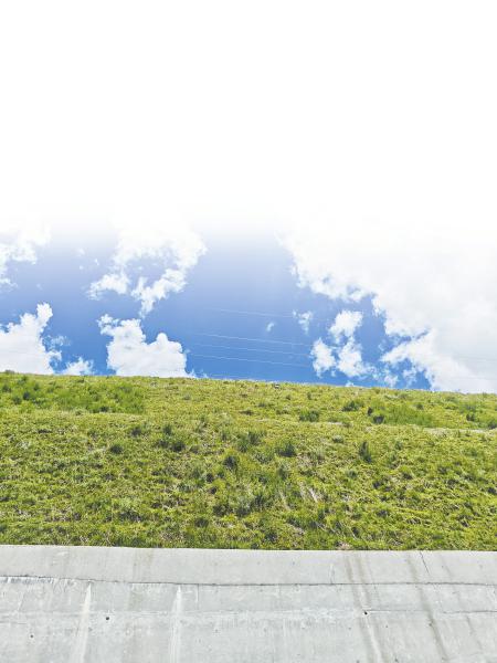 高速公路旁的边坡,移植的草甸郁郁葱葱。