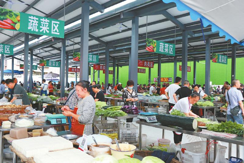 乐山市市中区新建草堂寺便民市场内,摊位分区明显。 赵径 摄