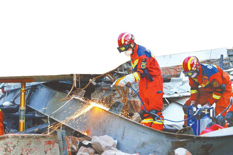 日前,“应急使命·2025”防灾减灾救灾新质战斗力实战检验性演习举行。演练中,消防员使用镁合金极速切割机切割建筑废墟钢件。 本版图片均由四川省应急管理厅提供