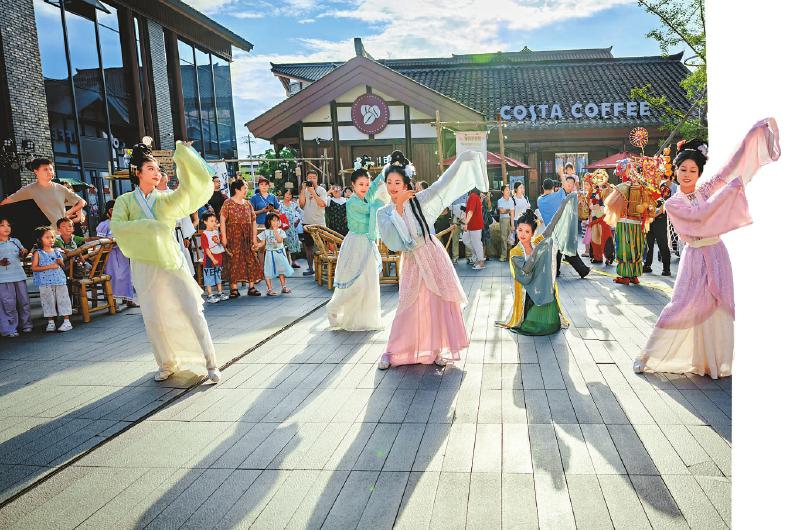 8月23日,乌镇戏剧节嘉年华团队在彭州市百里一·龙兴集开演,让游客亲历《汴京闹市》的鲜活场景。周巧旻 摄(C视觉)
