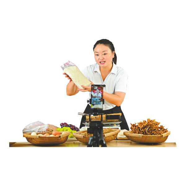 广元市苍溪县河地镇兴华村党支部书记谢艾军在直播带货,帮助地方销售农副产品。