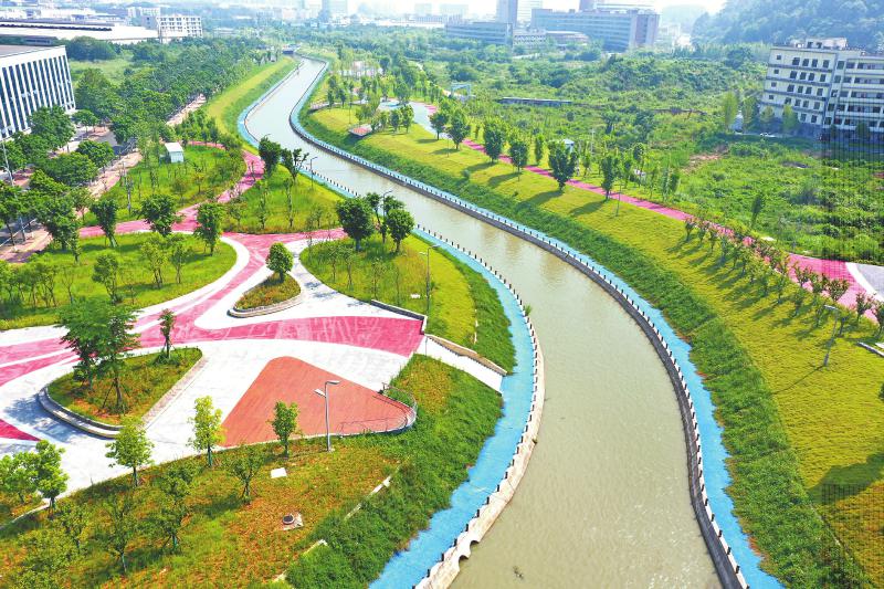 乐山高新区防洪排涝综合整治项目实施护岸工程。乐山市住房和城乡建设局供图