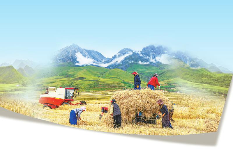 8月27日,在甘孜州甘孜县来马镇来马村,农牧民正在收割青稞。又到青稞收获季,田间地头一片忙碌的丰收景象。林漫 摄(C视觉)