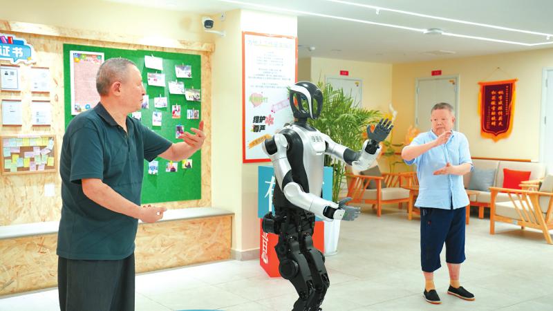 机器人带着老年人锻炼。 成都观察 杨柳 摄