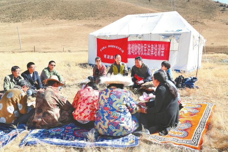 四川同心·律师服务团木里分团律师在康坞牧场开展法律培训。