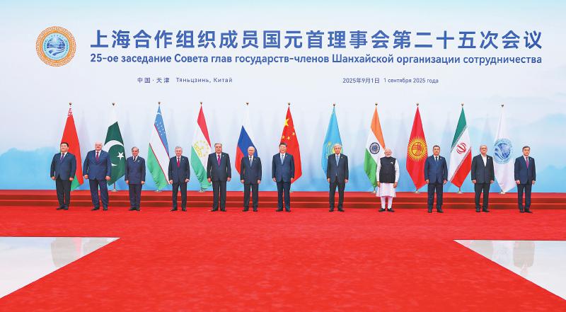 9月1日上午,上海合作组织成员国元首理事会第二十五次会议在天津梅江会展中心举行。中国国家主席习近平主持会议并发表题为《牢记初心使命开创美好未来》的重要讲话。这是习近平同出席会议的上海合作组织成员国领导人、常设机构负责人集体合影。 新华社记者 黄敬文 摄