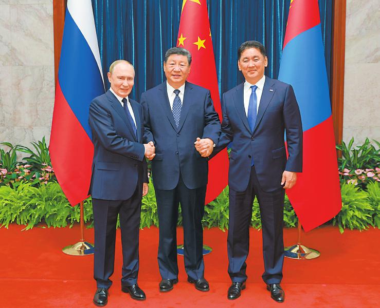 20250903四川日报图片 来源:20250903四川日报 发布时间:2025-09-03 16:15:25 浏览次数: 次 【字体:小 大】 九月二日上午,国家主席习近平同俄罗斯总统普京、蒙古国总统呼日勒苏赫在北京人民大会堂举行中俄蒙三国元首第七次会晤。新华社记者丁海涛摄 九月二日上午,国家主席习近平在北京人民大会堂同来华出席二〇二五年上海合作组织峰会和纪念中国人民抗日战争暨世界反法西斯战争胜利八十周年活动的俄罗斯总统普京举行会谈。新华社记者黄敬文摄 天府长岛数字文创园内的AG电竞西南总部,日均吸引400余名粉丝前来打卡。四川日报全媒体记者 赵明 摄 孟宪华。 娄井海。四川日报全媒体记者卢春阳 摄 陈红手捧奶奶赵一曼和父亲的合影画像。 封面新闻记者 杨涛 摄 来源: 20250903四川日报 终审:唐志昂 分享到: 关闭本页 【打印正文】