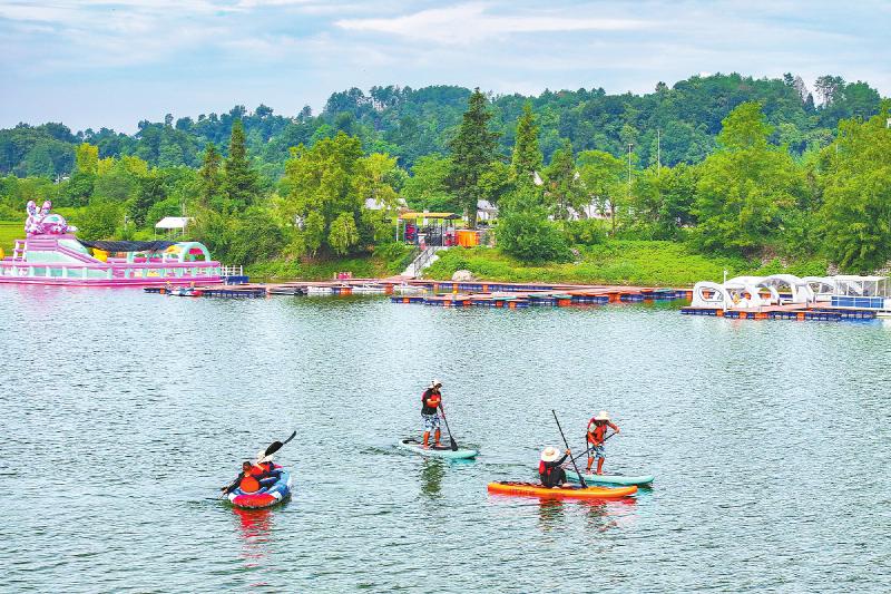 8月15日,雅安市名山区的百丈湖水上运动休闲俱乐部吸引了不少游客前往,享受水上运动的乐趣。 雅安观察 黄刚 摄