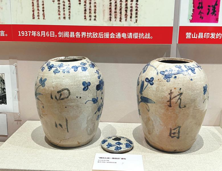 “四川人民一致抗日”瓷坛。