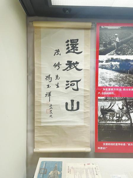 冯玉祥的隶书字条“还我河山”。四川日报全媒体记者 简霞 摄