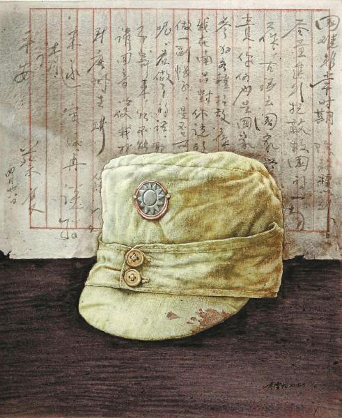 在众多抗战题材美术作品中,四川音乐学院成都美术学院副教授林雪松的《一封家书》尺幅不大,内容和形式却别具一格。这幅水彩画由一顶新四军军帽和一封家书组成,家书以平常的内容反映了革命军人浓浓的爱国主义精神,带血的军帽则直观地展示着战争的残酷。作品以写实的手法描绘,没有正面展现战士、战斗或战场,而是以干枯的血迹、显旧的家书,让“为何而战”的思考更加生动清晰,并以此缅怀为抗战作出牺牲的革命军人。作品以如此视角呈现给观者,让人不由得联想到杜甫名句“烽火连三月,家书抵万金”,从中凸显出中华儿女传承千年的家国情怀。(余如波)
