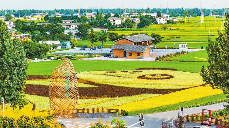 9月3日,崇州市天府粮仓国家现代农业产业园,十万亩稻谷在阳光的照射下,呈现出金灿灿的丰收景象。 李旭 摄(C视觉)